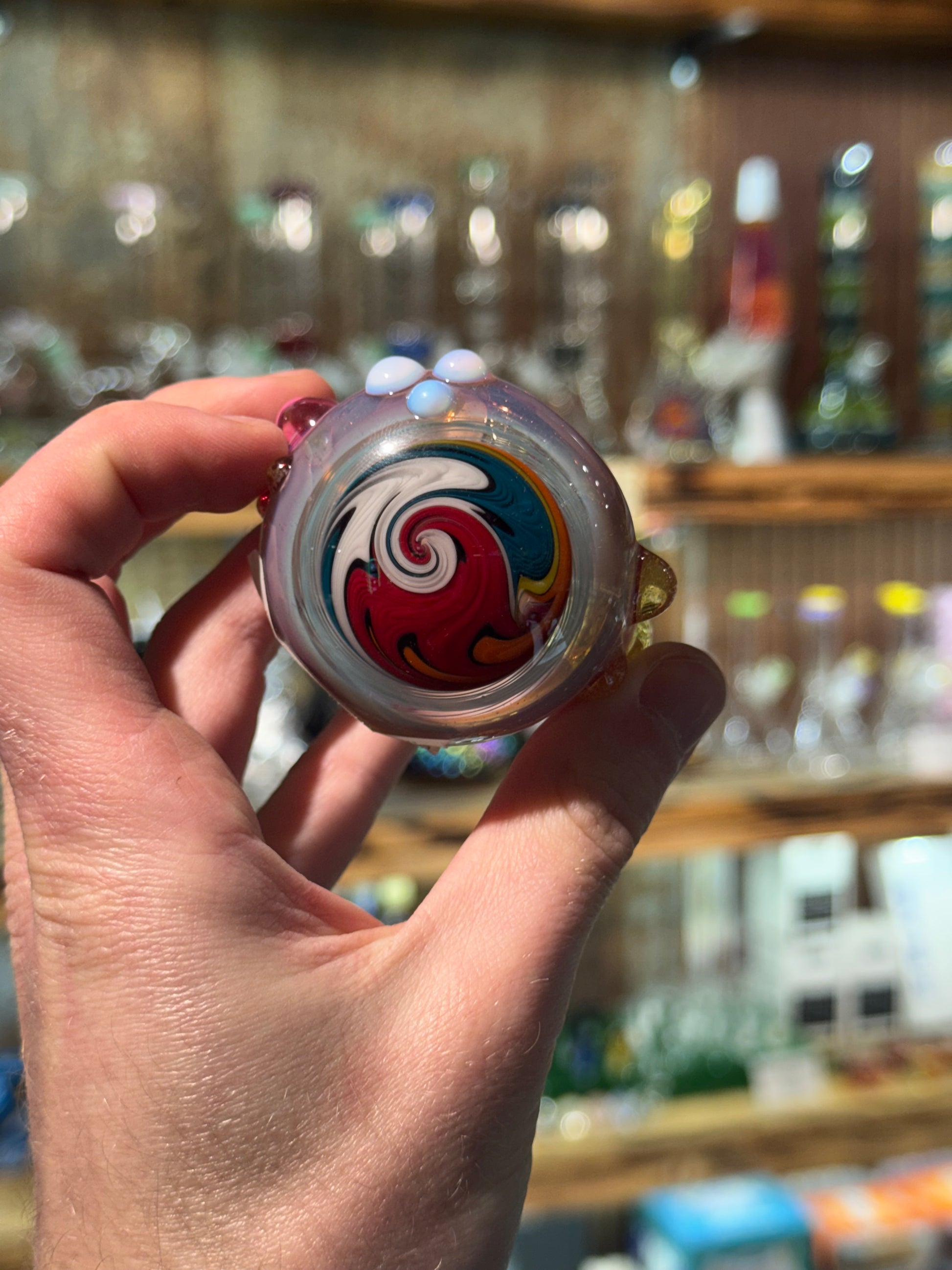 This spoon features a variety of sections from JmassWhat, encalmo’ed and then shaped into a beautiful spoon. The linwork cap comes to a beautiful termination, and the horns add the perfect flayer!